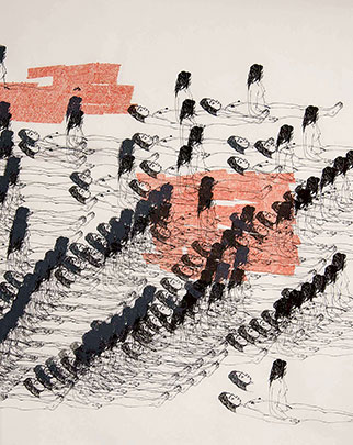 Curious drawings on Japanese Paper using Masking and Screen printing